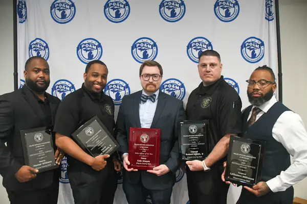 During the Business Meeting highlighting the 2025 Police Officer of the Year Awards at POAM’s Annual Convention, Deputy Cole Glaspie of the Wayne County Sheriff’s Office received POAM’s highest individual honor: Police Officer of the Year. Deputies Homar Williams and Leo Powers II also received Distinguished Service Awards for their essential roles during the same incident.
