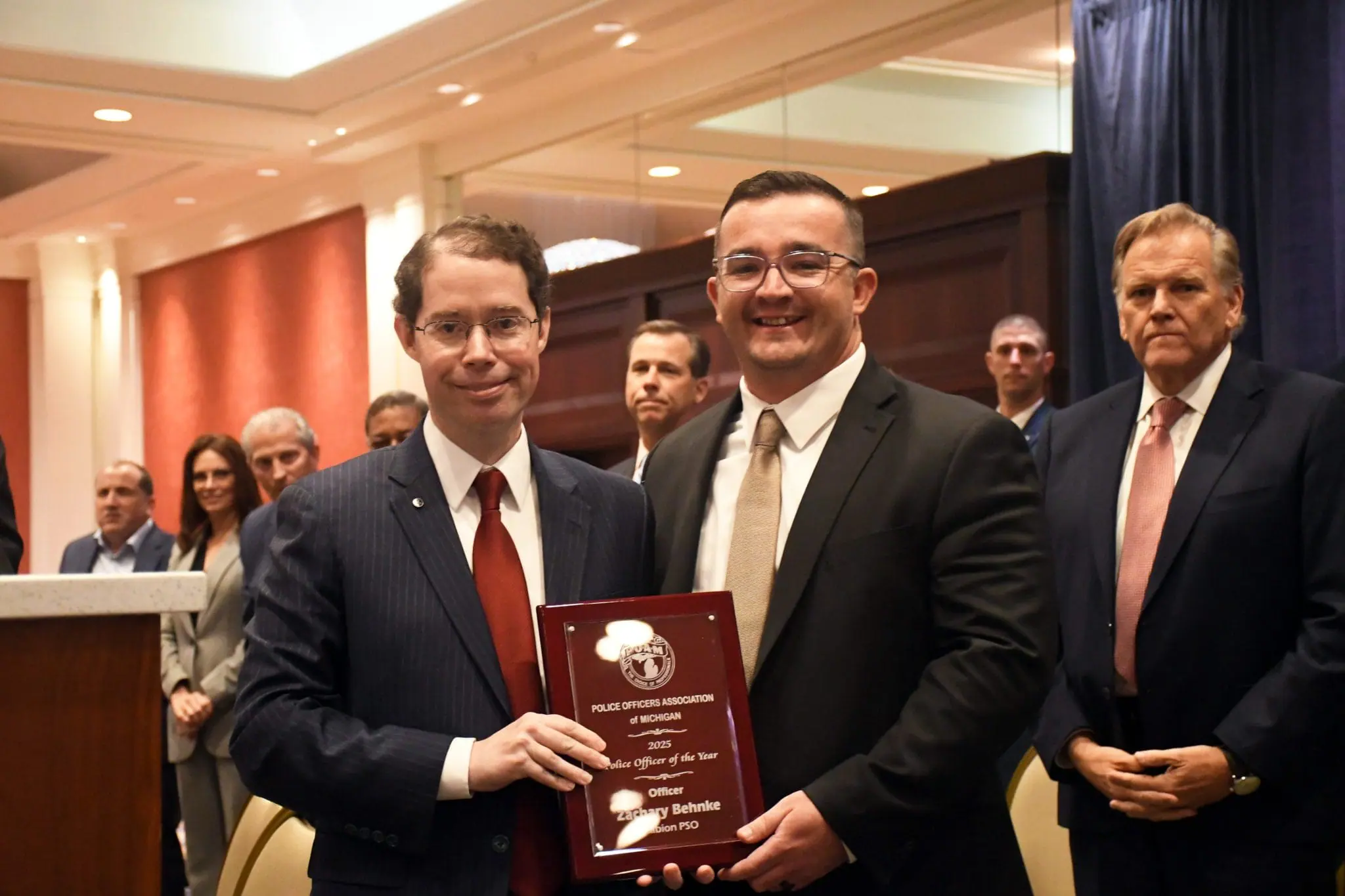 The award was presented before a crowd of law enforcement professionals, elected officials, and public safety leaders across Michigan, as part of the annual celebration recognizing bravery and dedication in the line of duty.